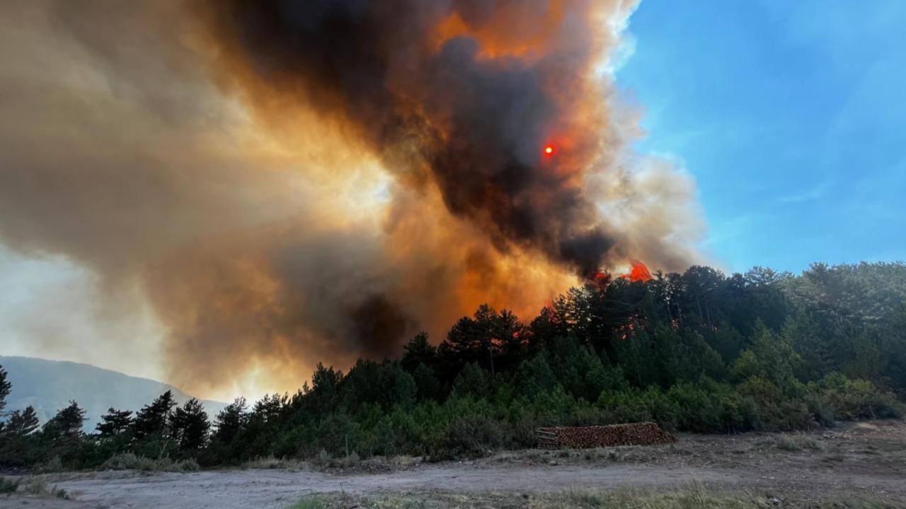 Bölge, söndüren pompalar, itfaiyeciler, helikopterler ve uçaklara gönderildi.
